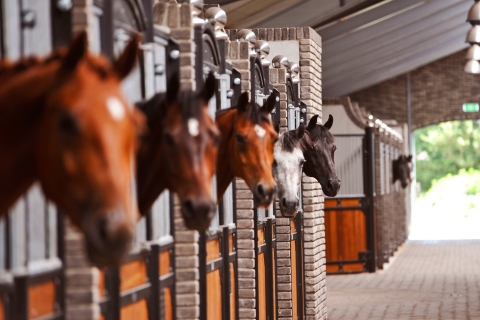 De lichte, ruime spuitplaatsen zijn voorzien van warm en koud water. Spuit- en poetsplaatsen hebben professionele bodems, die voorkomen dat de bodem glad wordt en de paarden(hoeven) bescherming biedt.